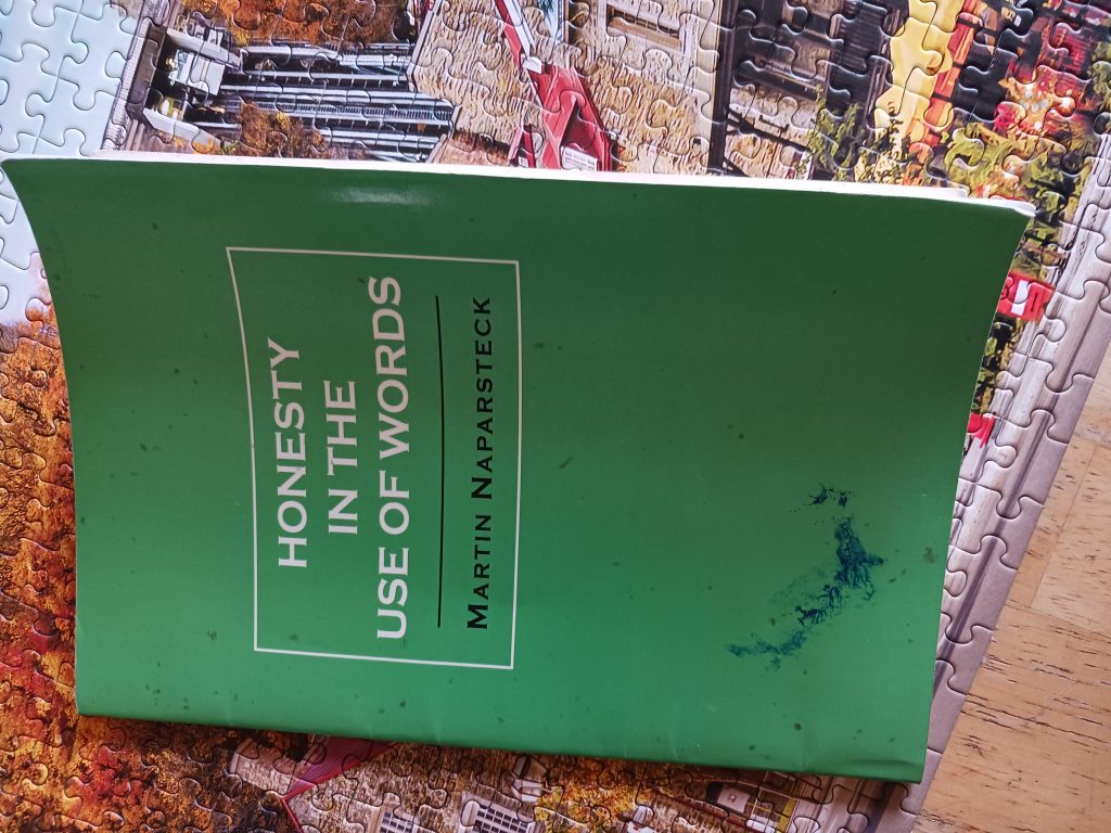 I’m always on the lookout for this kind of thing while browsing at my local used bookstore and was recently delighted to find on the dollar table a curled, ink-smudged copy of Honesty in the Use of Words, a monograph by Rochester-based writer and teacher Martin Naparsteck. A self-published pamphlet, Honesty in the Use of Words comes out swinging with its mission statement: “Competent writing is a skill. Good writing is an art. Great writing is an act of high morality.”